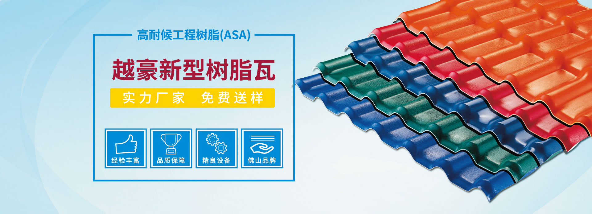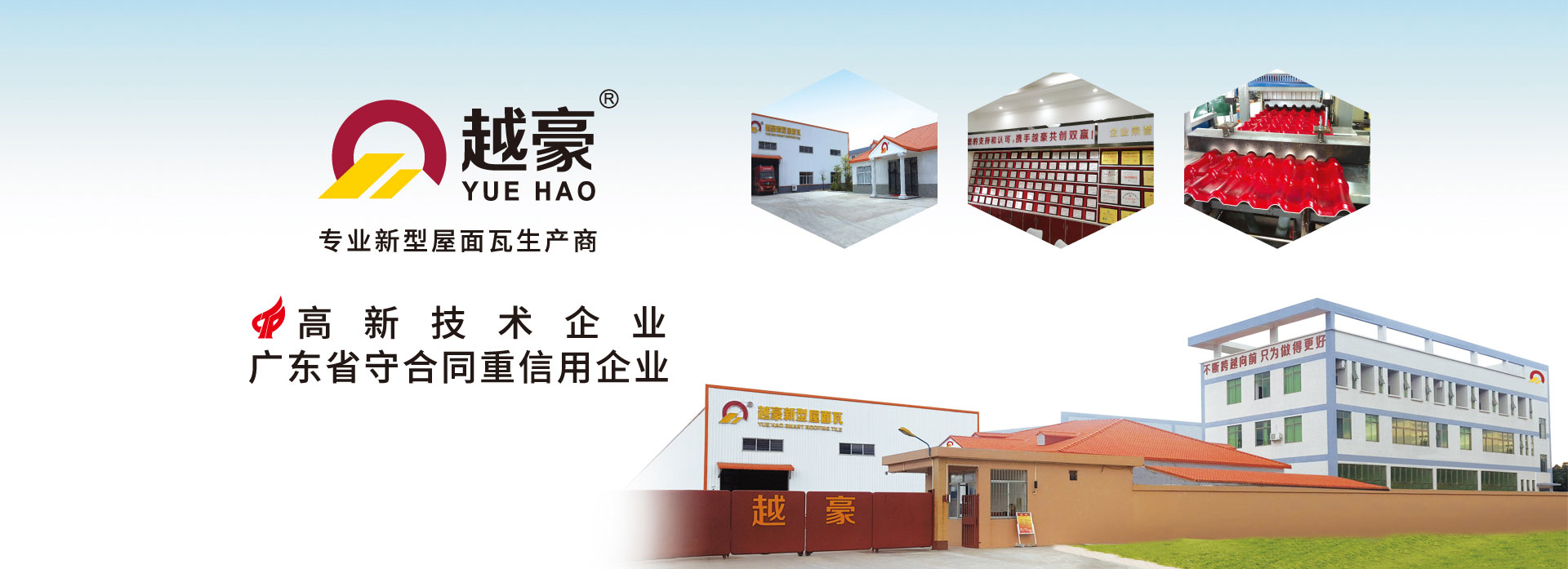佛山市越豪建材科技有限公司位于建材制造業(yè)發(fā)達的佛山市,是一家專業(yè)研發(fā)、生產、銷售ASA合成樹脂瓦、APVC 工程耐候瓦、PVC多層防腐隔熱瓦等系列產品的廠家。
